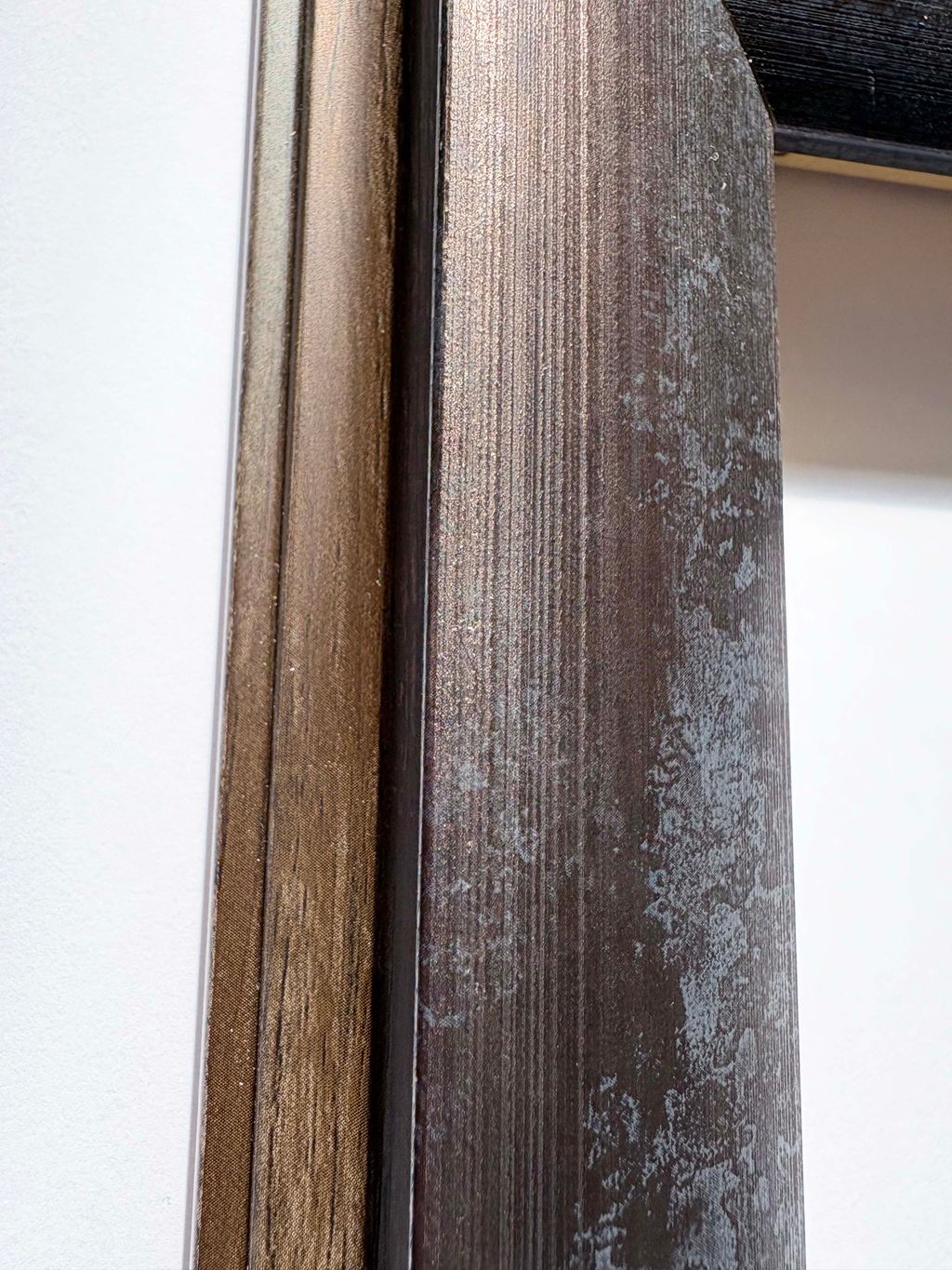 Presentation: Glazed and framed with a metallic-effect finish